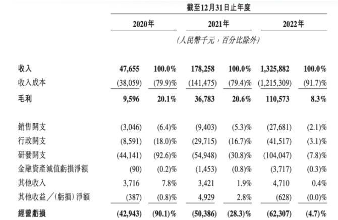 港交所网站最新显示,知行汽车科技股份有限公司于4月4日正式在港交所递交主板上市申请,花旗银行,华泰国际与建银国际为该申请联席保荐人,据了解知行科技招股书显示,2020年至2022年,知行科技公司营收分别是4766万,1.78亿和13.26亿元,亏损分别是5282万,4.64亿和3.42亿元,2022年的毛的率下降了约12.3%,据知情人透露,该公司的收入约有百分之96来自于吉利集团。