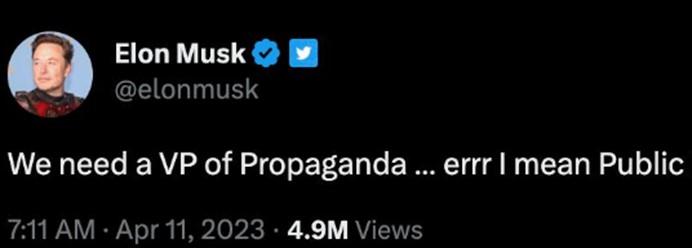 4月9日,据外媒报道,马斯克在个人社交媒体上发布了一条推文,该推文中讲到在线诚招PR副总裁职位,针对此事,很多网友纷纷在该推文下留言,质问马斯克是否是愿意让位了?为何此次马斯克的这条推文会在国外社交媒体上引起关注,原因竟然是这几天推特这款社交软件出现了bug,发送在好友圈的推特会被一些陌生人看到,所以马斯克发布在个人社交朋友圈的这条信息便被公众收到。