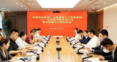 中建科技集团有限公司5月17日和上海荷福人工智能科技有限公司共同对于建立AI、信息技术研发、利用联合创新中心,双方在北京正式签订合作框架协议。由中建科技党委副书记、总经理张仲华、荷福集团董事长周锦霆在会议上详谈,共同见证签约,此外荷福集团独立董事长乔翔、副总裁濮建、邵宇丰,与中建科技副总经理樊则森全部参与会议进行签约。