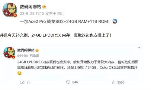在这几起事件发生之后,后续在发布的旗舰手机直接就标配了16 GB的运行内存,出现这样的情况仔细想一想确实是十分恐怖的,曾经让人难以触及的大运存手机现在已经成为了白菜价,这种情况放在以前都是很难想象的事情,不过事情就此并未结束,最近又有数码博主爆料,一加旗下又将推出新款手机,这款手机将会搭载24GB的超大运行内存。