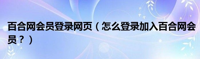大家好,小安来为大家解答以上问题。百合网会员登录网页,怎么登录加入百合网会员?很多人还不知道,现在让我们一起来看看吧!