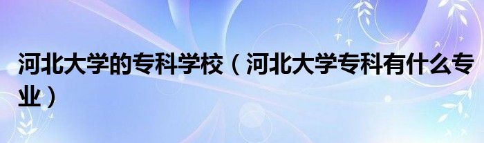 大家好,小安来为大家解答以上问题。河北大学的专科学校,河北大学专科有什么专业很多人还不知道,现在让我们一起来看看吧!