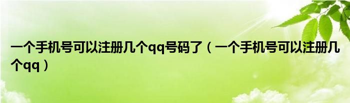 大家好,小安来为大家解答以上问题。一个手机号可以注册几个qq号码了,一个手机号可以注册几个qq很多人还不知道,现在让我们一起来看看吧!