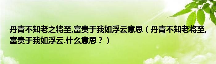 大家好,小安来为大家解答以上问题。丹青不知老之将至,富贵于我如浮云意思,丹青不知老将至,富贵于我如浮云.什么意思?很多人还不知道,现在让我们一起来看看吧!