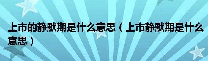 大家好,小安来为大家解答以上问题。上市的静默期是什么意思,上市静默期是什么意思很多人还不知道,现在让我们一起来看看吧!