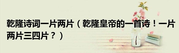 大家好,小安来为大家解答以上问题。乾隆诗词一片两片,乾隆皇帝的一首诗!一片两片三四片?很多人还不知道,现在让我们一起来看看吧!