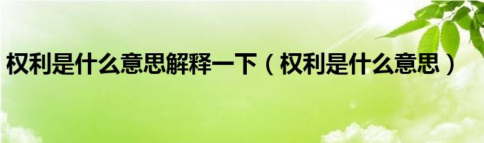 大家好,小安来为大家解答以上问题。权利是什么意思解释一下,权利是什么意思很多人还不知道,现在让我们一起来看看吧!