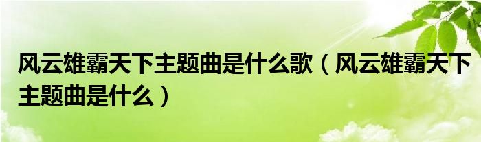 大家好,小安来为大家解答以上问题。风云雄霸天下主题曲是什么歌,风云雄霸天下主题曲是什么很多人还不知道,现在让我们一起来看看吧!