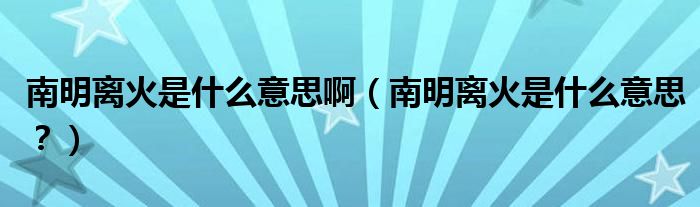 大家好,小安来为大家解答以上问题。南明离火是什么意思啊,南明离火是什么意思?很多人还不知道,现在让我们一起来看看吧!