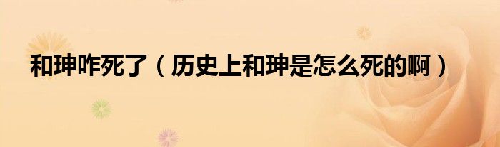 大家好,小安来为大家解答以上问题。和珅咋死了,历史上和珅是怎么死的啊很多人还不知道,现在让我们一起来看看吧!