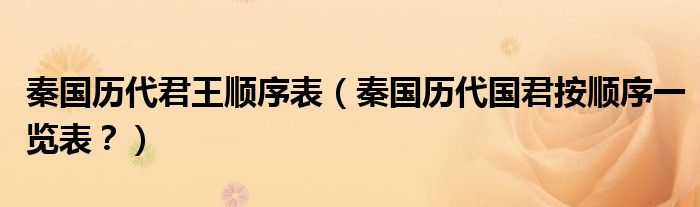 大家好,小安来为大家解答以上问题。秦国历代君王顺序表,秦国历代国君按顺序一览表?很多人还不知道,现在让我们一起来看看吧!