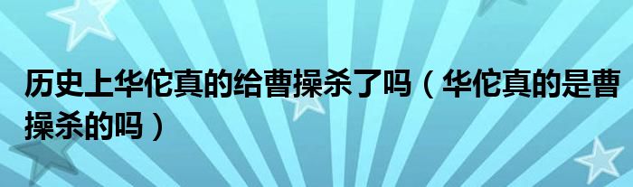 大家好,小安来为大家解答以上问题。历史上华佗真的给曹操杀了吗,华佗真的是曹操杀的吗很多人还不知道,现在让我们一起来看看吧!