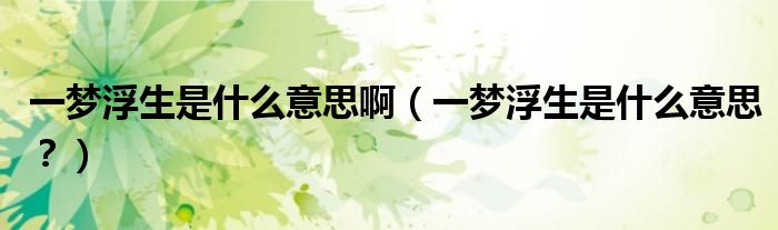 大家好,小安来为大家解答以上问题。一梦浮生是什么意思啊,一梦浮生是什么意思?很多人还不知道,现在让我们一起来看看吧!