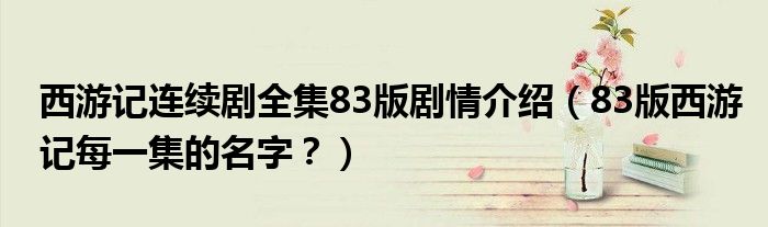大家好,小安来为大家解答以上问题。西游记连续剧全集83版剧情介绍,83版西游记每一集的名字?很多人还不知道,现在让我们一起来看看吧!