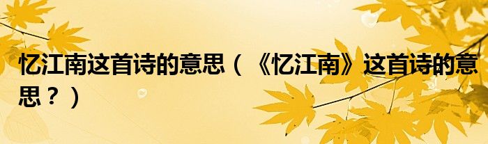 大家好,小安来为大家解答以上问题。忆江南这首诗的意思,《忆江南》这首诗的意思?很多人还不知道,现在让我们一起来看看吧!