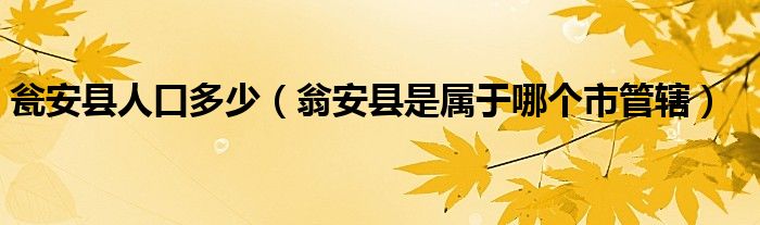 大家好,小安来为大家解答以上问题。瓮安县人口多少,翁安县是属于哪个市管辖很多人还不知道,现在让我们一起来看看吧!