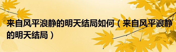大家好,小安来为大家解答以上问题。来自风平浪静的明天结局如何,来自风平浪静的明天结局很多人还不知道,现在让我们一起来看看吧!
