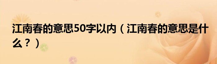 大家好,小安来为大家解答以上问题。江南春的意思50字以内,江南春的意思是什么?很多人还不知道,现在让我们一起来看看吧!