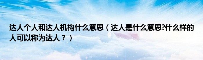 大家好,小安来为大家解答以上问题。达人个人和达人机构什么意思,达人是什么意思?什么样的人可以称为达人?很多人还不知道,现在让我们一起来看看吧!