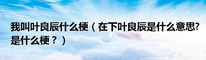 大家好,小安来为大家解答以上问题。我叫叶良辰什么梗,在下叶良辰是什么意思?是什么梗?很多人还不知道,现在让我们一起来看看吧!