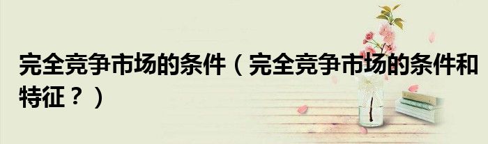 大家好,小安来为大家解答以上问题。完全竞争市场的条件,完全竞争市场的条件和特征?很多人还不知道,现在让我们一起来看看吧!