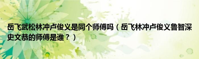 大家好,小安来为大家解答以上问题。岳飞武松林冲卢俊义是同个师傅吗,岳飞林冲卢俊义鲁智深史文恭的师傅是谁?很多人还不知道,现在让我们一起来看看吧!