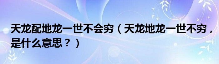 大家好,小安来为大家解答以上问题。天龙配地龙一世不会穷,天龙地龙一世不穷 ,是什么意思?很多人还不知道,现在让我们一起来看看吧!