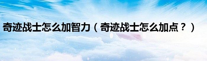 大家好,小安来为大家解答以上问题。奇迹战士怎么加智力,奇迹战士怎么加点?很多人还不知道,现在让我们一起来看看吧!