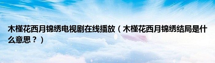 大家好,小安来为大家解答以上问题。木槿花西月锦绣电视剧在线播放,木槿花西月锦绣结局是什么意思?很多人还不知道,现在让我们一起来看看吧!