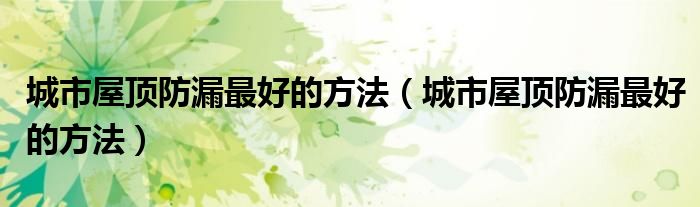 大家好,小安来为大家解答以上问题。城市屋顶防漏最好的方法,城市屋顶防漏最好的方法很多人还不知道,现在让我们一起来看看吧!