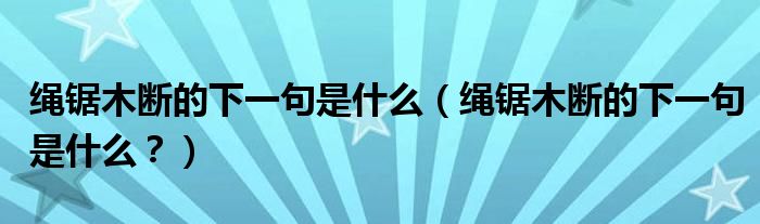大家好,小安来为大家解答以上问题。绳锯木断的下一句是什么,绳锯木断的下一句是什么?很多人还不知道,现在让我们一起来看看吧!