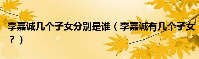 大家好,小安来为大家解答以上问题。李嘉诚几个子女分别是谁,李嘉诚有几个子女?很多人还不知道,现在让我们一起来看看吧!