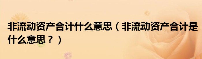大家好,小安来为大家解答以上问题。非流动资产合计什么意思,非流动资产合计是什么意思?很多人还不知道,现在让我们一起来看看吧!