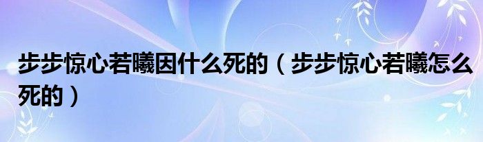 大家好,小安来为大家解答以上问题。步步惊心若曦因什么死的,步步惊心若曦怎么死的很多人还不知道,现在让我们一起来看看吧!