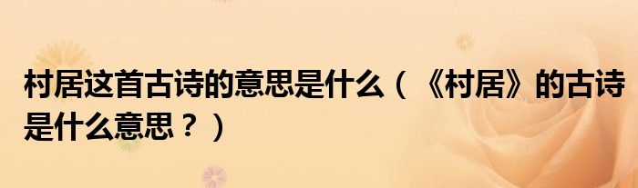 大家好,小安来为大家解答以上问题。村居这首古诗的意思是什么,《村居》的古诗是什么意思?很多人还不知道,现在让我们一起来看看吧!