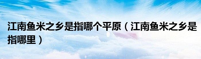 大家好,小安来为大家解答以上问题。江南鱼米之乡是指哪个平原,江南鱼米之乡是指哪里很多人还不知道,现在让我们一起来看看吧!
