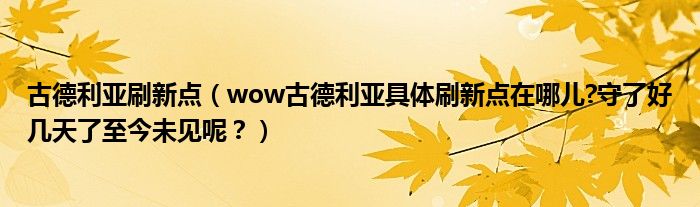 大家好,小安来为大家解答以上问题。古德利亚刷新点,wow古德利亚具体刷新点在哪儿?守了好几天了至今未见呢?很多人还不知道,现在让我们一起来看看吧!