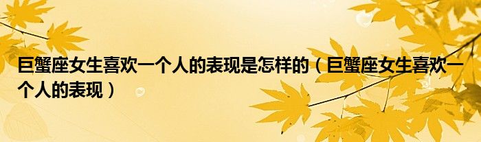 大家好,小安来为大家解答以上问题。巨蟹座女生喜欢一个人的表现是怎样的,巨蟹座女生喜欢一个人的表现很多人还不知道,现在让我们一起来看看吧!