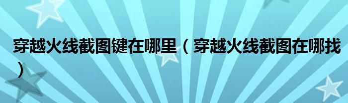 大家好,小安来为大家解答以上问题。穿越火线截图键在哪里,穿越火线截图在哪找很多人还不知道,现在让我们一起来看看吧!