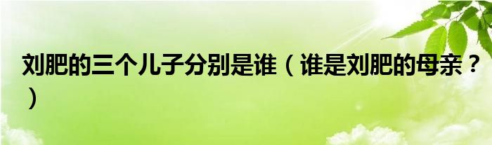 大家好,小安来为大家解答以上问题。刘肥的三个儿子分别是谁,谁是刘肥的母亲?很多人还不知道,现在让我们一起来看看吧!