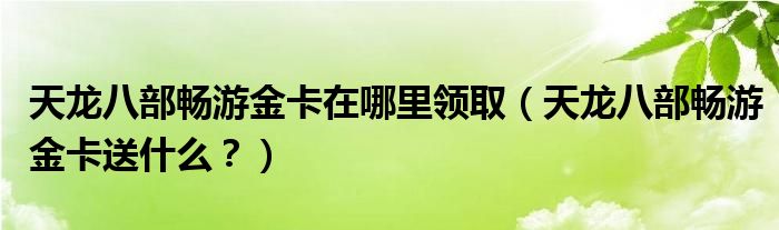 大家好,小安来为大家解答以上问题。天龙八部畅游金卡在哪里领取,天龙八部畅游金卡送什么?很多人还不知道,现在让我们一起来看看吧!