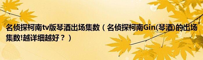 大家好,小安来为大家解答以上问题。名侦探柯南tv版琴酒出场集数,名侦探柯南Gin(琴酒)的出场集数!越详细越好?很多人还不知道,现在让我们一起来看看吧!