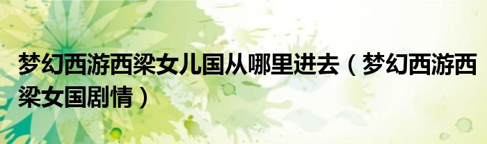 大家好,小安来为大家解答以上问题。梦幻西游西梁女儿国从哪里进去,梦幻西游西梁女国剧情很多人还不知道,现在让我们一起来看看吧!