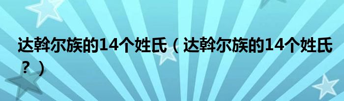 大家好,小安来为大家解答以上问题。达斡尔族的14个姓氏,达斡尔族的14个姓氏?很多人还不知道,现在让我们一起来看看吧!