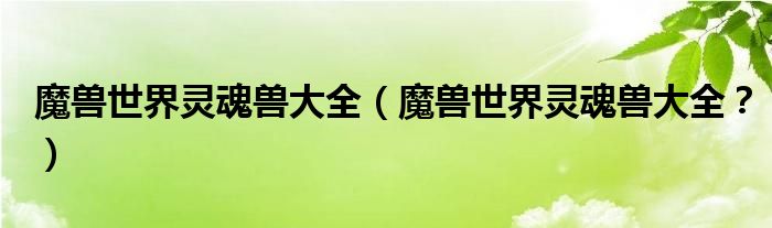 大家好,小安来为大家解答以上问题。魔兽世界灵魂兽大全,魔兽世界灵魂兽大全?很多人还不知道,现在让我们一起来看看吧!