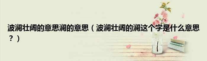 大家好,小安来为大家解答以上问题。波澜壮阔的意思澜的意思,波澜壮阔的澜这个字是什么意思?很多人还不知道,现在让我们一起来看看吧!