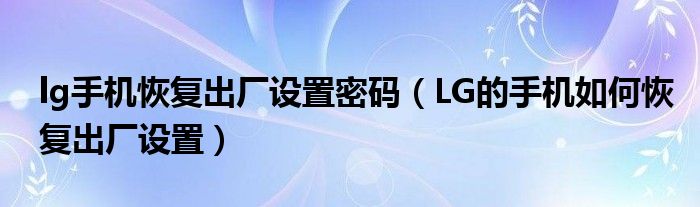 大家好,小安来为大家解答以上问题。lg手机恢复出厂设置密码,LG的手机如何恢复出厂设置很多人还不知道,现在让我们一起来看看吧!