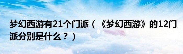 大家好,小安来为大家解答以上问题。梦幻西游有21个门派,《梦幻西游》的12门派分别是什么?很多人还不知道,现在让我们一起来看看吧!
