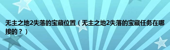 大家好,小安来为大家解答以上问题。无主之地2失落的宝藏位置,无主之地2失落的宝藏任务在哪接的?很多人还不知道,现在让我们一起来看看吧!
