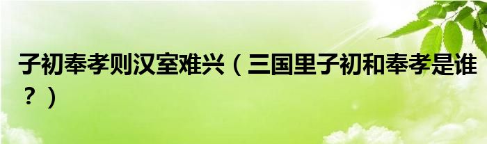 大家好,小安来为大家解答以上问题。子初奉孝则汉室难兴,三国里子初和奉孝是谁?很多人还不知道,现在让我们一起来看看吧!
